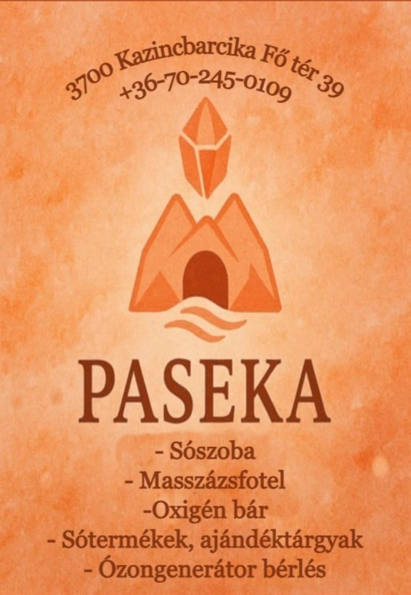 PASEKA Relaxációs Központunkban különleges élményben lehet része. Kínálatunkban szerepel sószoba, masszázsfotel és oxigén bár, melyek hozzájárulnak a fizikai közérzet javításához.